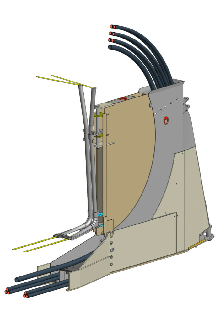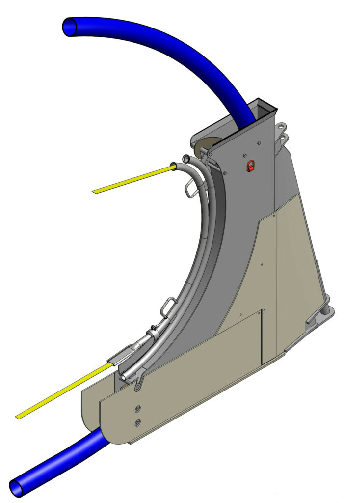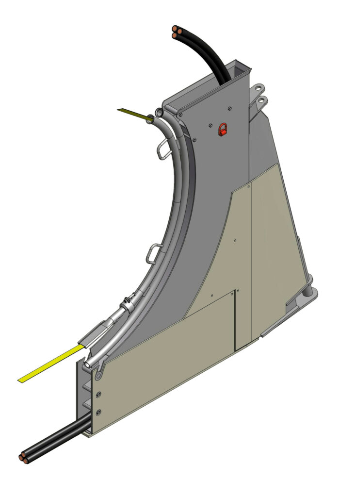 Les puits de guidage spécialement fabriqués par l’entreprise Föckersperger permettent d’enfouir des câbles, des tubes de protection pour câbles ainsi que des conduites en PE, des tuyaux en acier et en fonte jusqu’à un diamètre de tuyau de 355 mm.