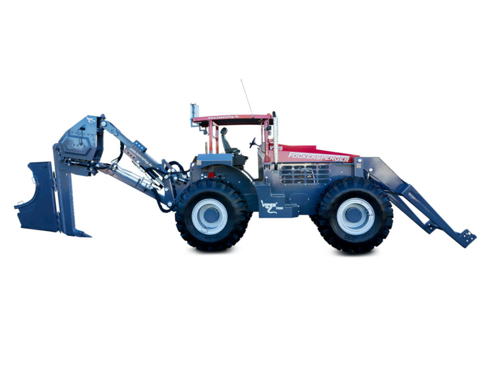 La charrue vibrante VIPER V225 de Föckersperger a été spécialement conçue pour l’enfouissement de câbles DSL, de tubes de protection pour câbles et de câbles électriques.